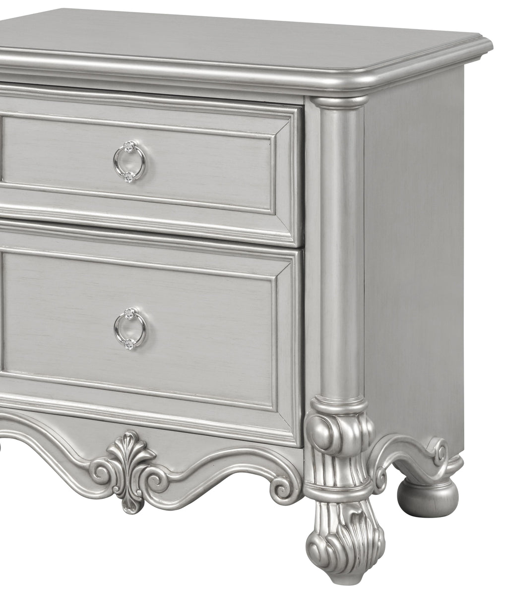 Adriana Transitional Style Nightstand in Silver finish Wood, 31 x 19 x 32, 97lbs.
