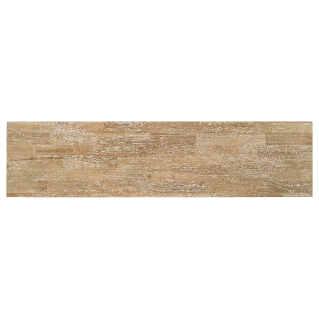Versatility is a definite plus in the design of this charming transitional wood TV stand. Spacious and equipped with plenty of storage room, this console creates a breezy look with cottage, coastal, and farmhouse influence. A rectangular brown finish ash wood top provides a breathtaking contrast to a white finished frame. Place components in a center open space and on adjustable shelving behind two glass-front doors, and stash media and accessories in a large slide-out drawer. This all-in-one console organizes entertainment devices and accessories to make sure your media viewing is smooth and easily accessible. Key Features: • Transitional wood TV stand with cottage, coastal, and farmhouse influence • Rectangular brown finish ash wood top with white finished frame • Center open space and adjustable shelving behind two glass-front doors • Large slide-out drawer for media and accessories • All-in-one console to organize entertainment devices and accessories