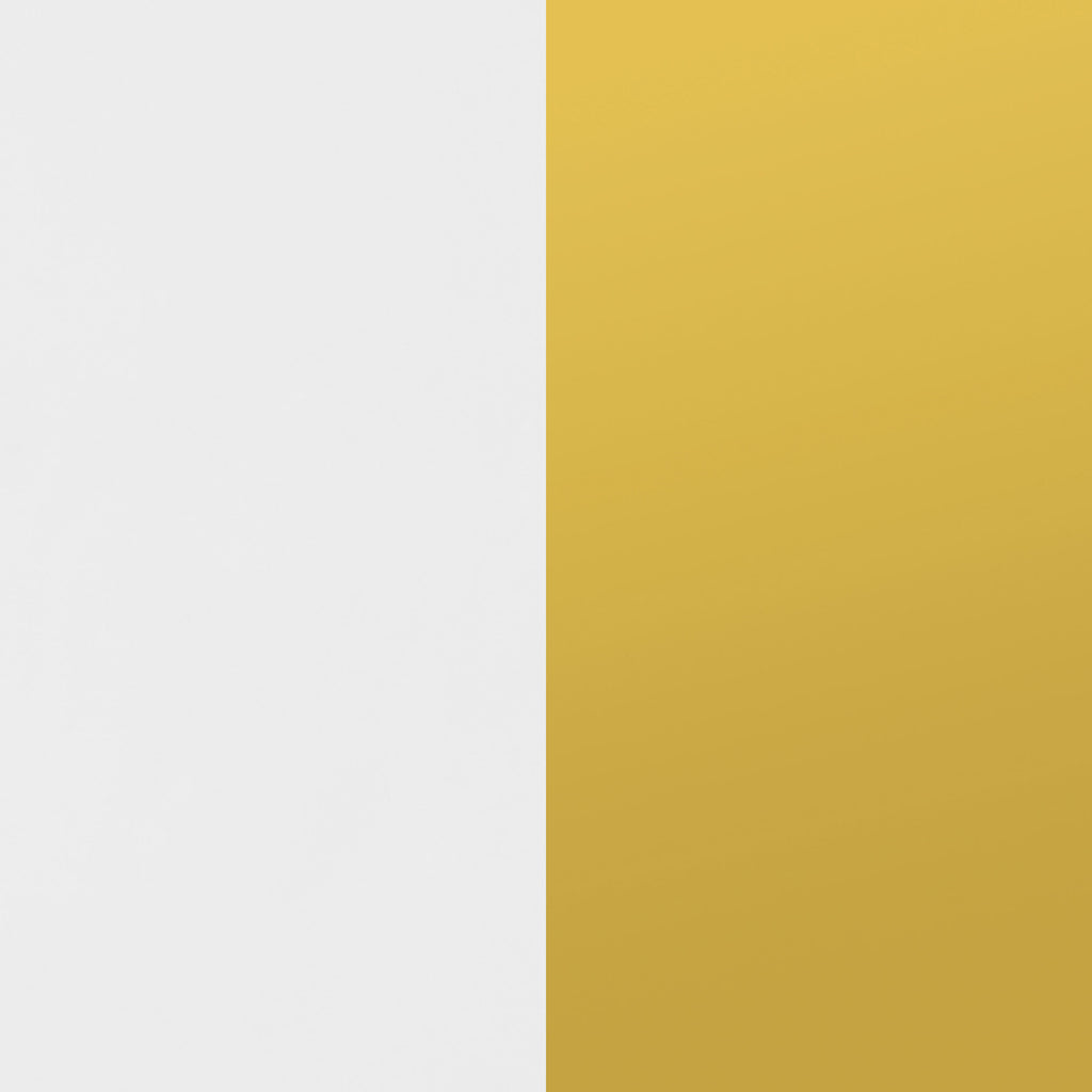 Add a bold statement piece to your space with this stunning modern accent cabinet. Featuring a glossy white finish with lustrous gold stainless steel trim, it showcases Art Deco flair with clean lines and geometric base supports. Behind double doors, adjustable shelves offer customizable storage. Crafted from durable MDF and stainless steel, this cabinet blends glamour and function beautifully in any setting.