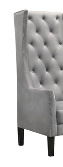 Cosmos Furniture's Hollywood transitional style velvet accent Silver Chair with nail heads and crystal button tufted back in black finish wood. The Hollywood high back chair is a great addition to your any room. This modern design is perfect for the head and/or foot of your dining table, living room, Bedroom and/or foyer providing dramatic layout. Built from a strong hardwood frame, covered with soft fabric, while complimented with a well-padded seat and tufted wing back chair is outfitted with nail head trim for extreme comfort. Make the Hollywood Chair a signature piece in your home.