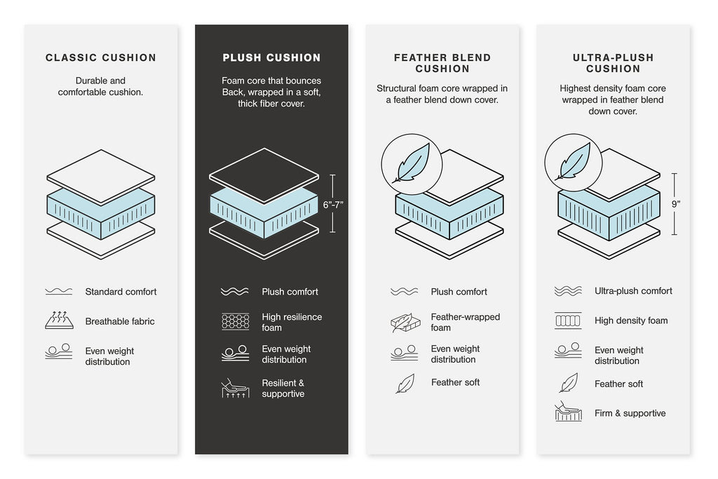 • Smooth platform foundation maintains tight, wrinkle-free look without dips or sags that can occur over time with sinuous spring foundations