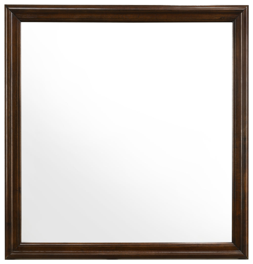 The Louis Philippe collection is highlighted by this 4-piece bedroom set that is perfect for the guest bedroom or youth bedroom. The Full bed (also available in Eastern King, Queen, and Twin) is characterized by a high headboard and low footboard, both with slightly flared styling. The nightstand and dresser have deep drawers with dovetail construction and silver bail handles for convenient pull-out and stylish appeal. Place the impressive rectangular mirror fits upon the dresser to complete the look. Built from select hardwoods and wood veneer, this traditional-style set comes with a cappuccino finish that adds a warm ambiance to the bedroom. Key Features: • A slightly higher headboard distinguishes this classic Louis Philippe style bed • Nickel finish bail drawer handles decorate drawer fronts • Dovetail drawer construction creates a sturdy drawer foundation • Crafted from rubberwood and okume veneer • Headboard only options are available to use with metal bed frames