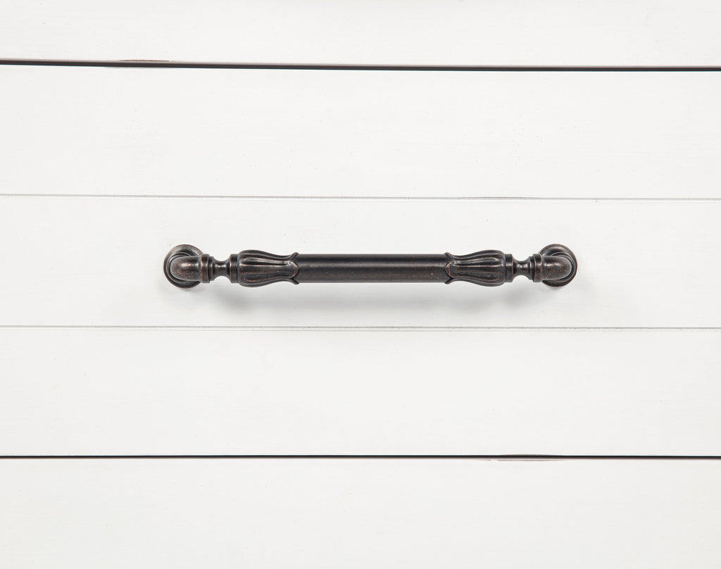 Steeped in elegance and shaped by thoughtful detail, this bedroom set captures the charm of timeless design. Crown moldings and carved accents highlight each piece, softened by a vintage white finish that whispers of age and grace. Hidden features like dual reading lights and jewelry trays offer modern convenience, while traditional construction ensures lasting durability. Crafted from poplar and engineered wood, the set brings classic character to restful spaces. Key Features: • Bedroom set with carved moldings, ornate trim, and traditional architectural elements • Vintage white finish brings a distressed look with soft, antique-inspired appeal • Select pieces include dual LED reading lights and hidden jewelry storage trays • Top drawers are felt-lined and glide smoothly with durable internal construction • Five-sided English dovetail drawers provide strength and full interior access • Crafted from poplar, MDF, and veneer for lasting beauty and classic refinement